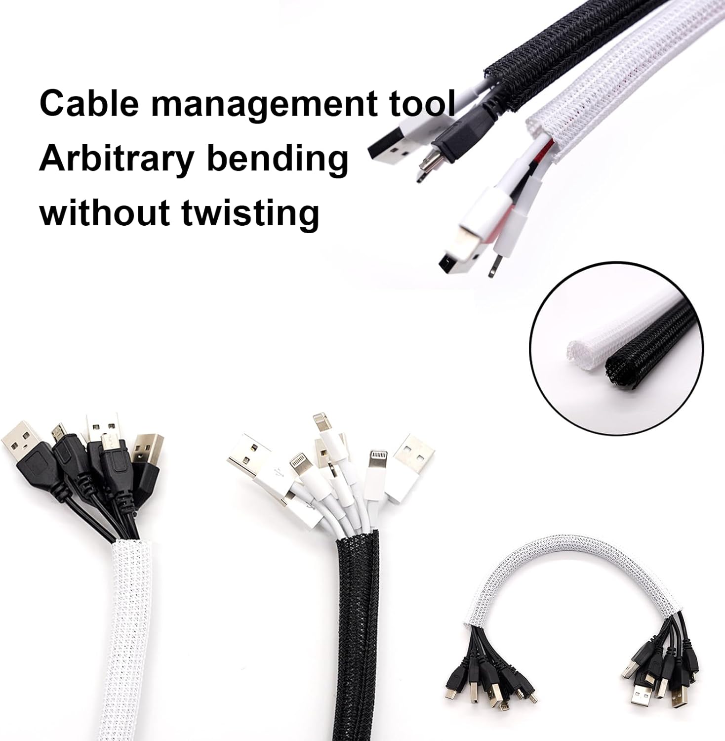 - 【Self-Wrapping Design + Easy Customization】 The QCSIW braided cable sleeve effortlessly wraps around multiple cables with its expandable design (0.75"-1.2" diameter). Simply cut to your desired length using household scissors—ideal for corners and tight spaces. Pro Tip: Briefly melt cut ends with a lighter to prevent fraying for a polished finish!