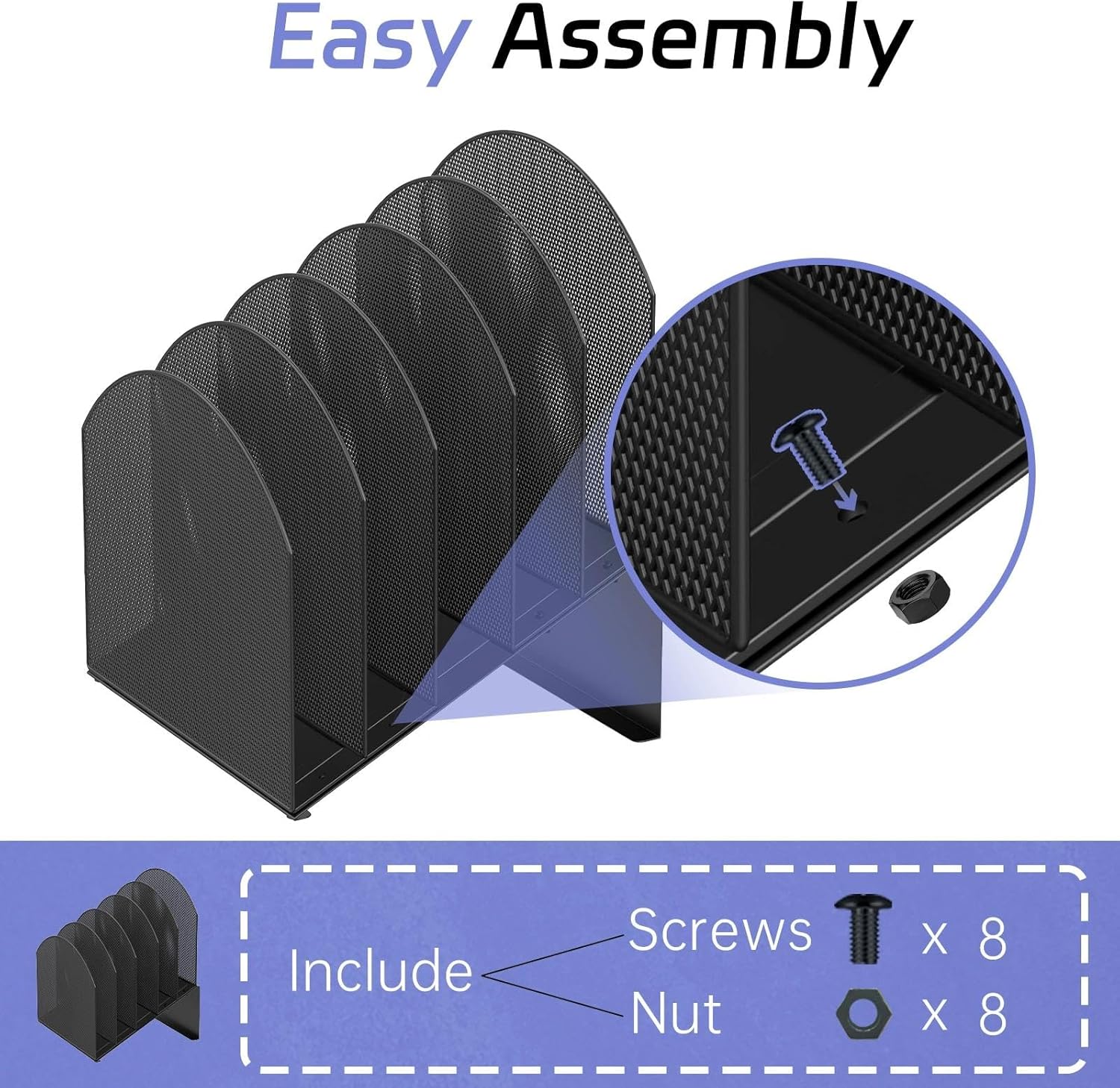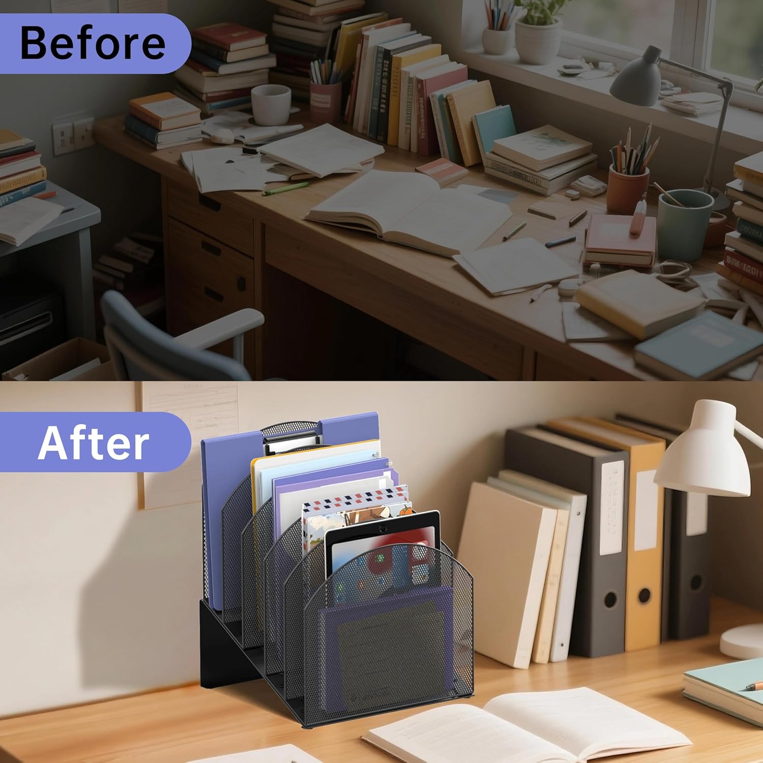 - Step-up Design: This desk file organizer with 5 mesh grids features an inclined design, allowing files to be separated for a clear view. It not only boasts a sense of design but also helps you sort and find office supplies efficiently.
