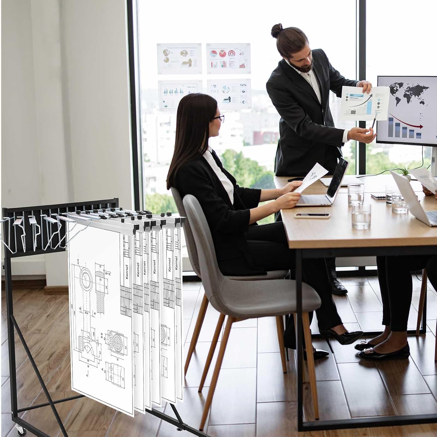 - High Capacity: the blueprint storage rack has been designed for high load capacity; Each hanging clamp can hold up to 100 drawings, this allows for systematic organization of numerous documents; Turn your disordered workplace into a streamlined, well organized space. blue print storage organizer is not limited to storing and displaying blueprints, it can also be used as a poster display stand, architectural drawing storage, map storage and other uses you need