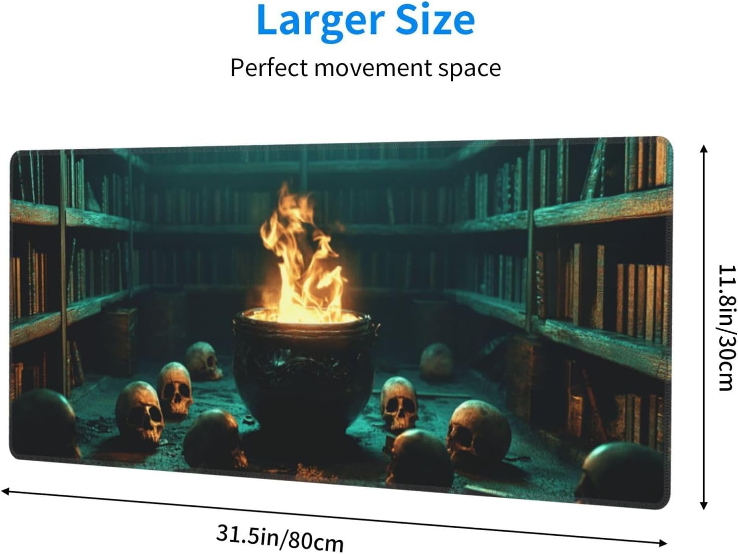 Skull Mouse Pad 31.5 X 11.8 Inch Big Desk Rubber Base Stitched Edges Keyboard Pad XXL Mouse Mat for Home Game and Office