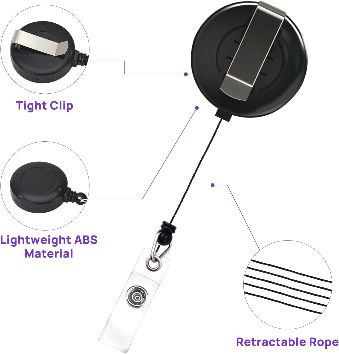 - Retractable Cord: Badge clips retractable is 26.5 inches in length and fits necessary distances when attached to a belt loop or backpack