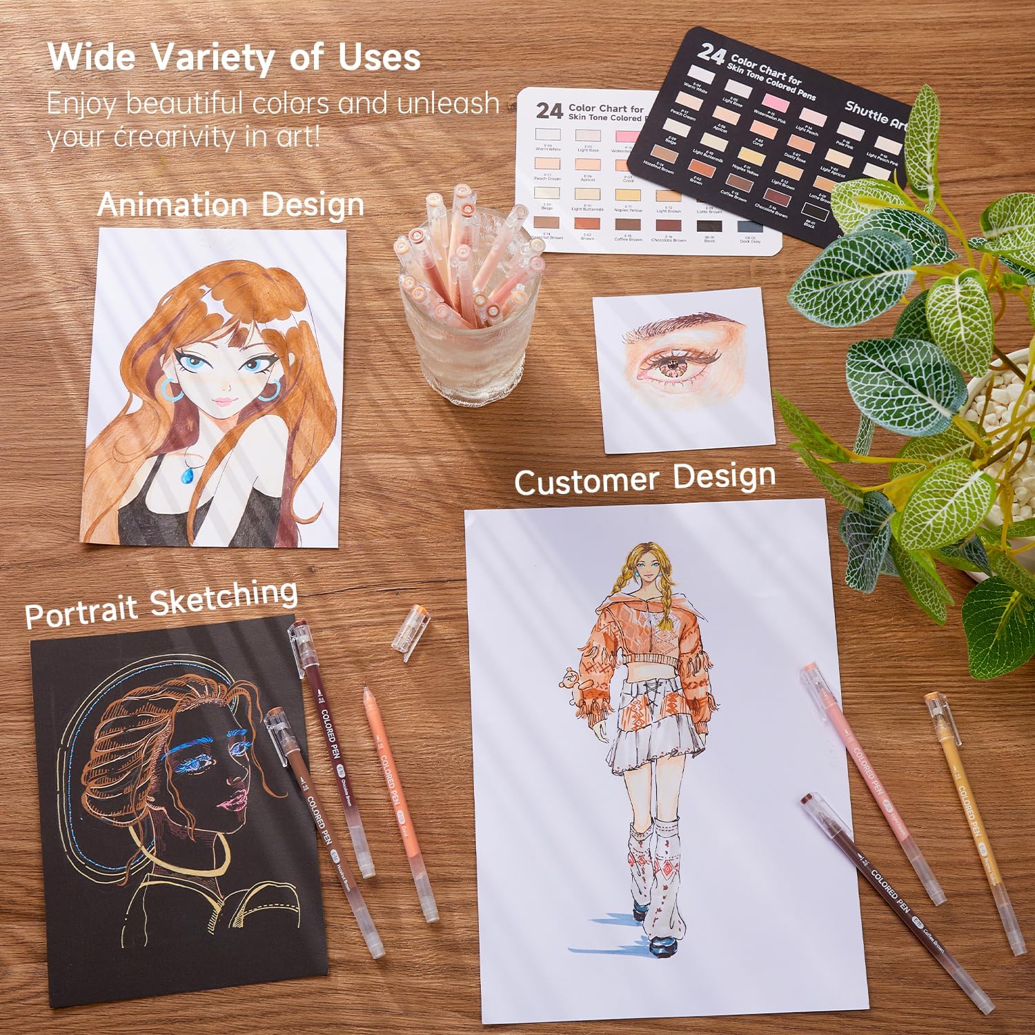 - 24 SKIN TONE COLORS & 2 COLOR SHEETS: Shuttle Art colored pen set comes with 24 skin tone colors. Varied and vivid colors look stunning on paper, especially standing out on black paper. Perfect for drawing portraits, comics, designs. Additionally, it contains 2 bonus color sheets. A hassle-free choice for your creating.
