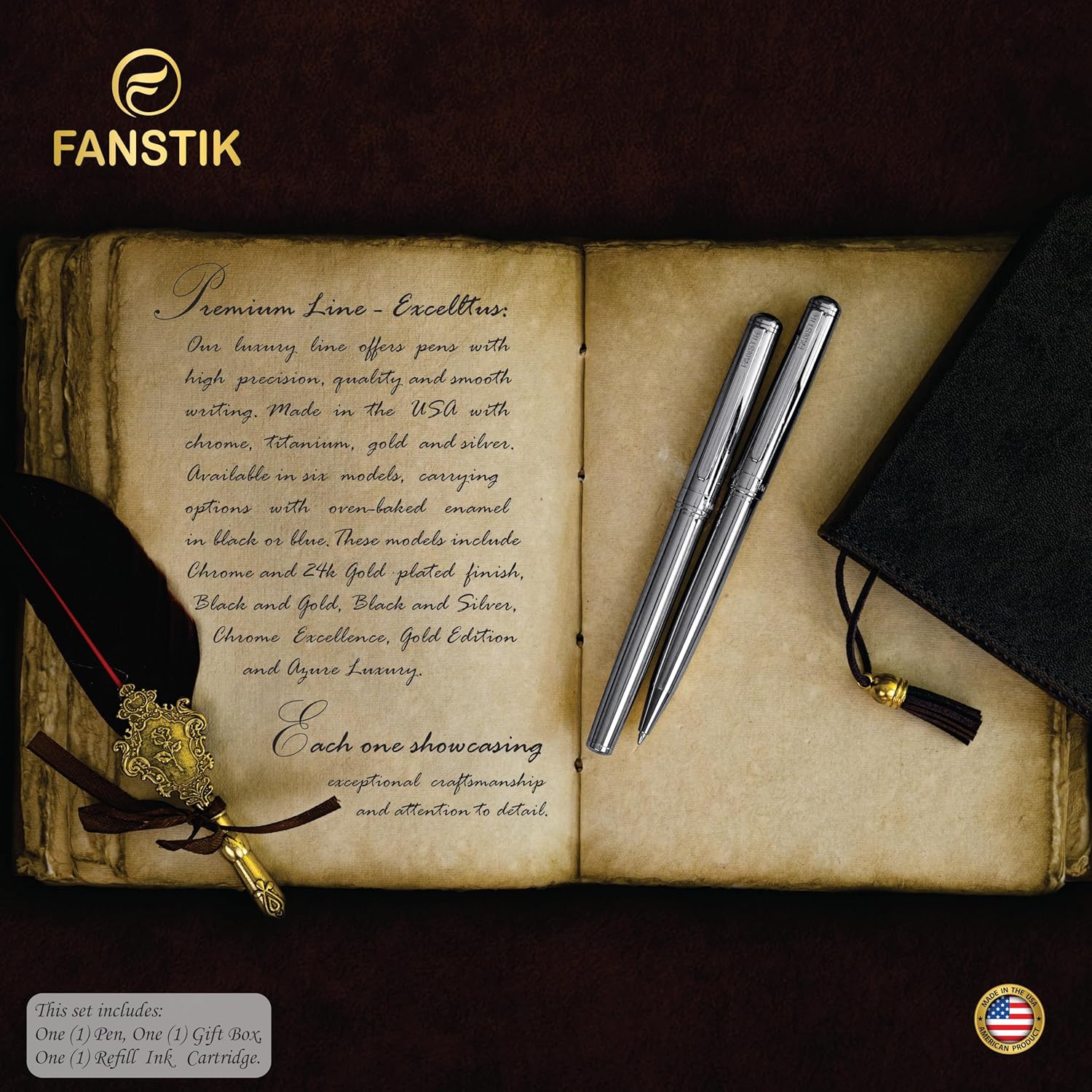 Customized Silver Luxury ballpoint pen (Made In USA) fancy gift set for women, Real 24K Gold Plating, Professional executive pen gift set for men (Lux Custom-BallPoint Silver)