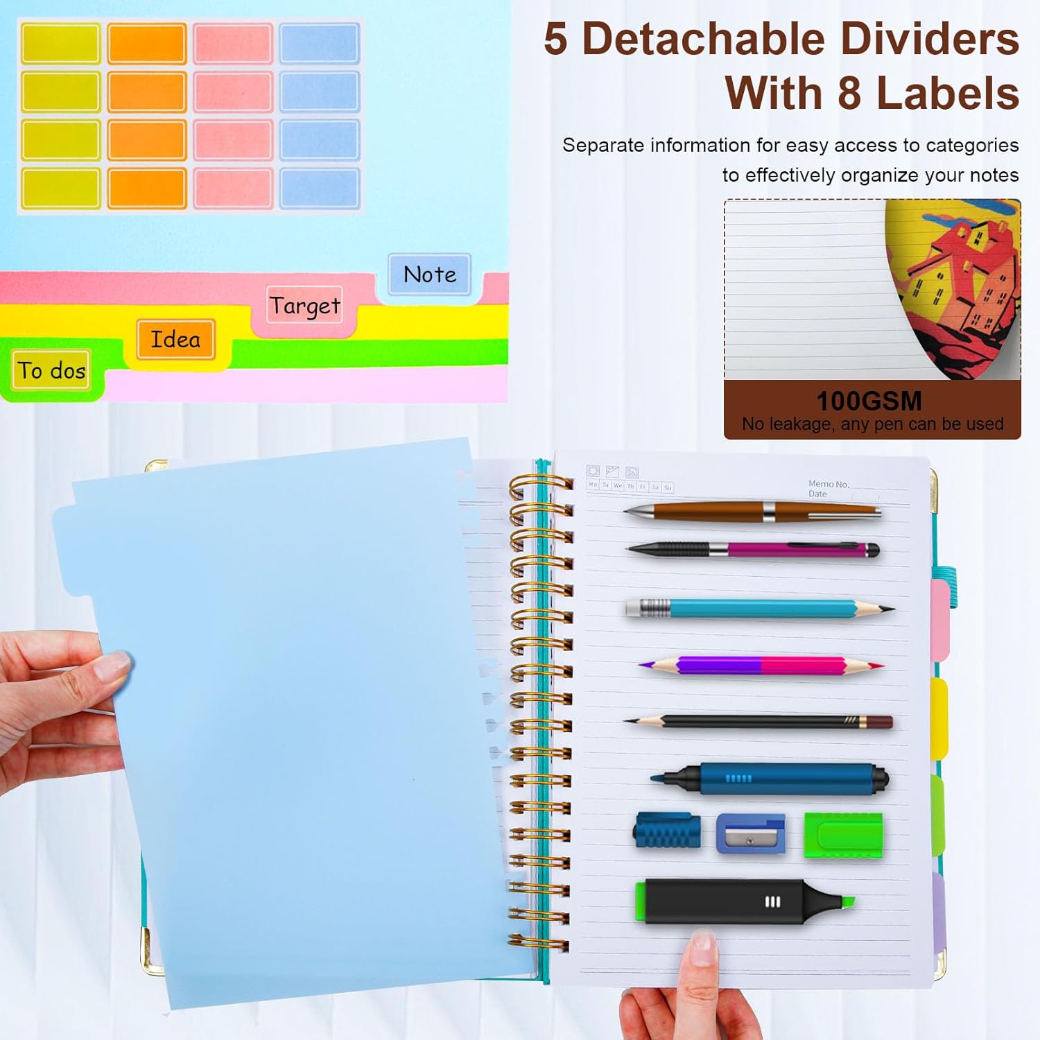 - Label compartmentļ¼Organize smarter with 5 movable dividers and 8 adhesive labels. This 5 subject notebook transforms your writing experience by helping categorize different topicsāideal for students or professionals who prefer tidy, efficient note-taking.