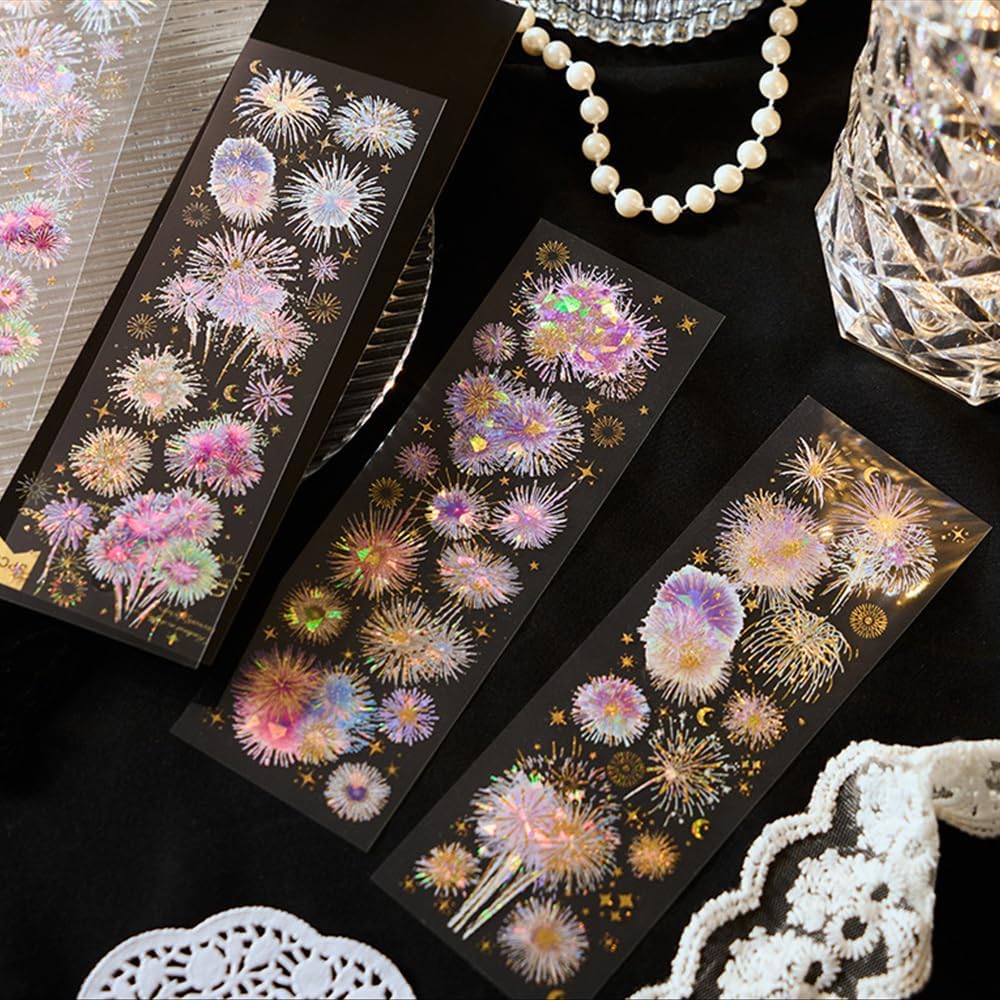 - 【Unique Design】The aesthetic stickers adopt a shiny fireworks pattern design, supplemented by 3D laser gold craft. A 0.01mm laser gold film is covered to the core area of the fireworks, and the gold powder particles are micro pressed to form a relief texture. Under light, the metallic luster and dynamic light and shadow are refracted, making the sticker shine like real fireworks, adding a dreamy atmosphere to the decoration.