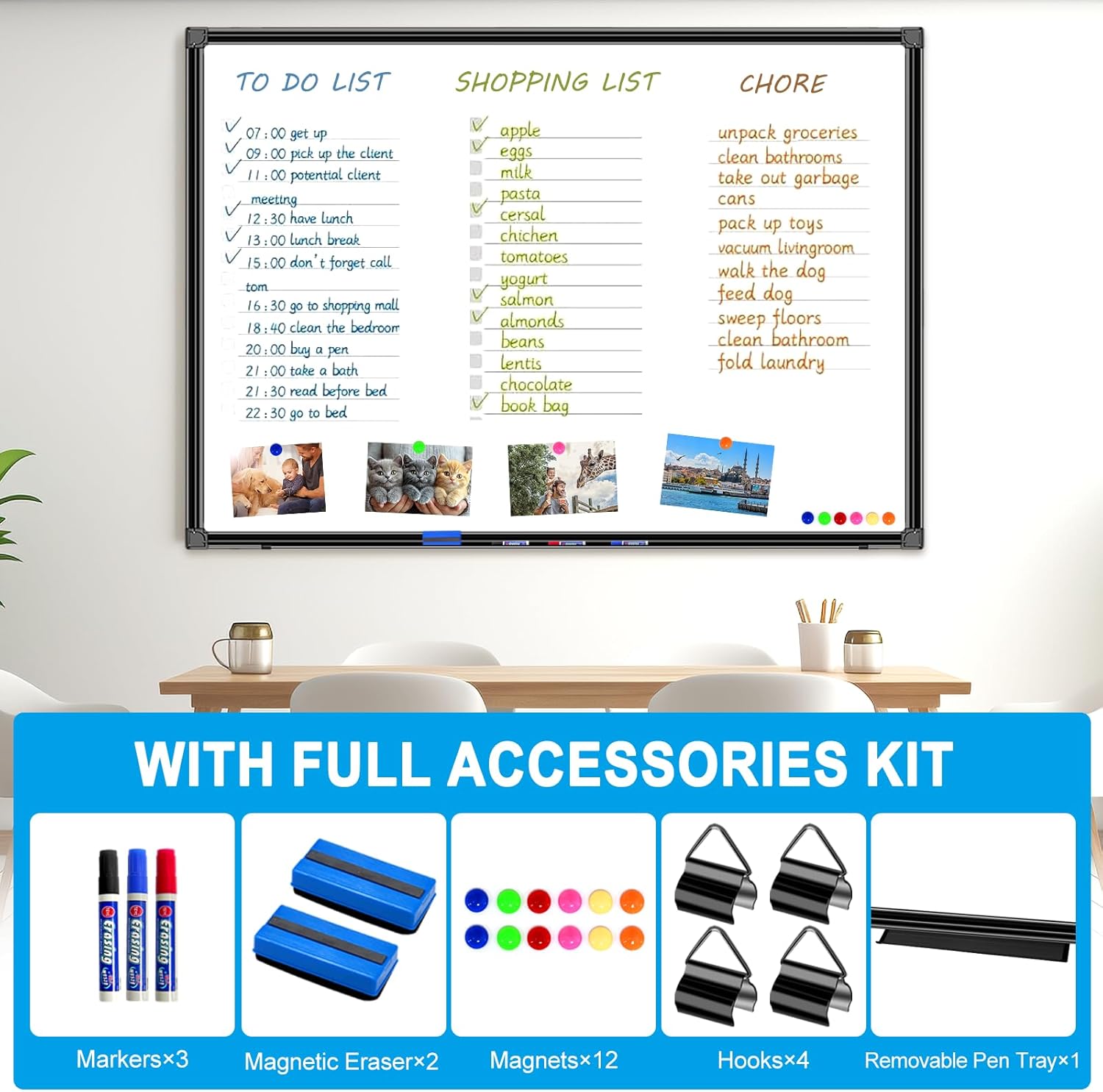 H-Qprobd 48"x36" Magnetic White Board Dry Erase Wall Mount Whiteboard - Office Home Classrooms White Board Hanging Writing Board with Black Aluminum Frame