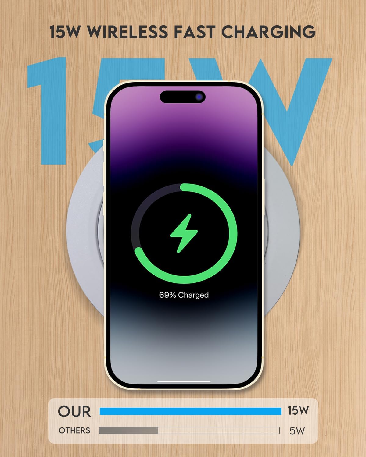 - Fast Charging Station: The embedded desktop charger features 15W fast charging, which can quickly replenishes the battery of compatible smartphones. It supports Qi charging standard and is suitable for most mobile phones in the market that can enjoy charging