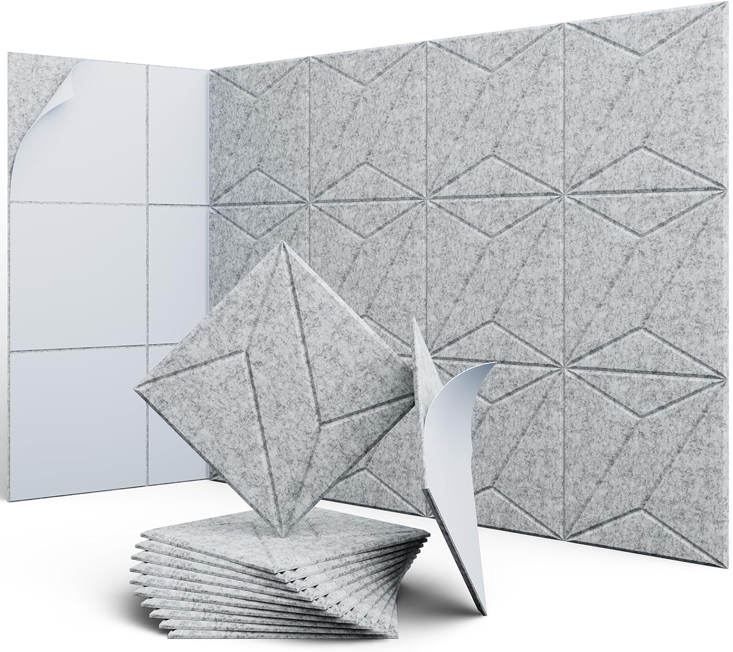 12 Pack 12" X 12" X 0.4" Acoustic Panels for Wall Sound Absorbing, P-Stripes Square Self-Adhesive Sound Panels, High Density Suitable for Multiple Scenarios(Silver Gray)