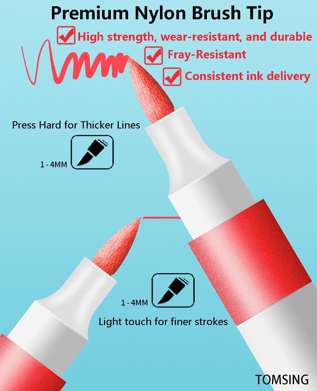 - 【High-Quality Brush tip】 The durable fiber brush nip resists breaking under strong pressure, won’t fray with repeated friction, and maintains its shape even during long creative sessions. Whether drawing bold outlines or delicate gradients with a light touch, the tip remains stable, preventing issues like "wearing down" or "flattening."