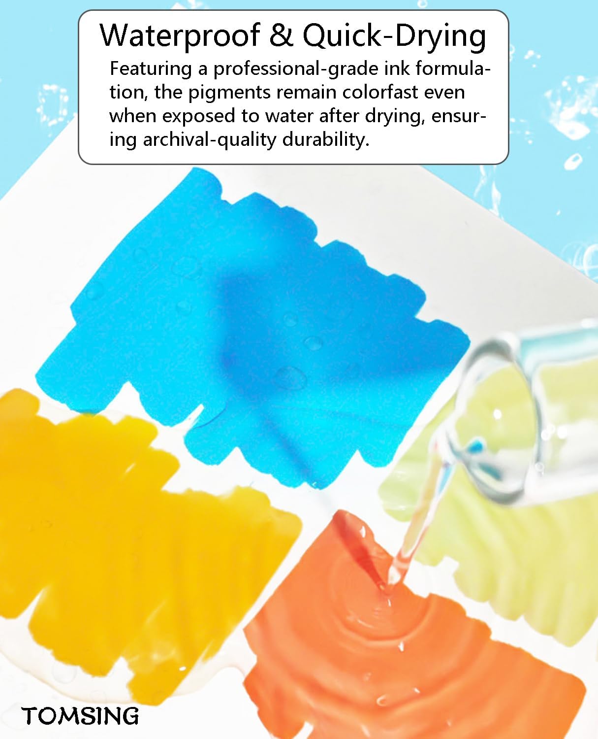 - 【Quick-Drying with High Coverage】Vivid, highly saturated colors with excellent coverage that dry quickly. Allows easy layering while being waterproof and lightfast, resisting fading. No bleeding or show-through on paper.
