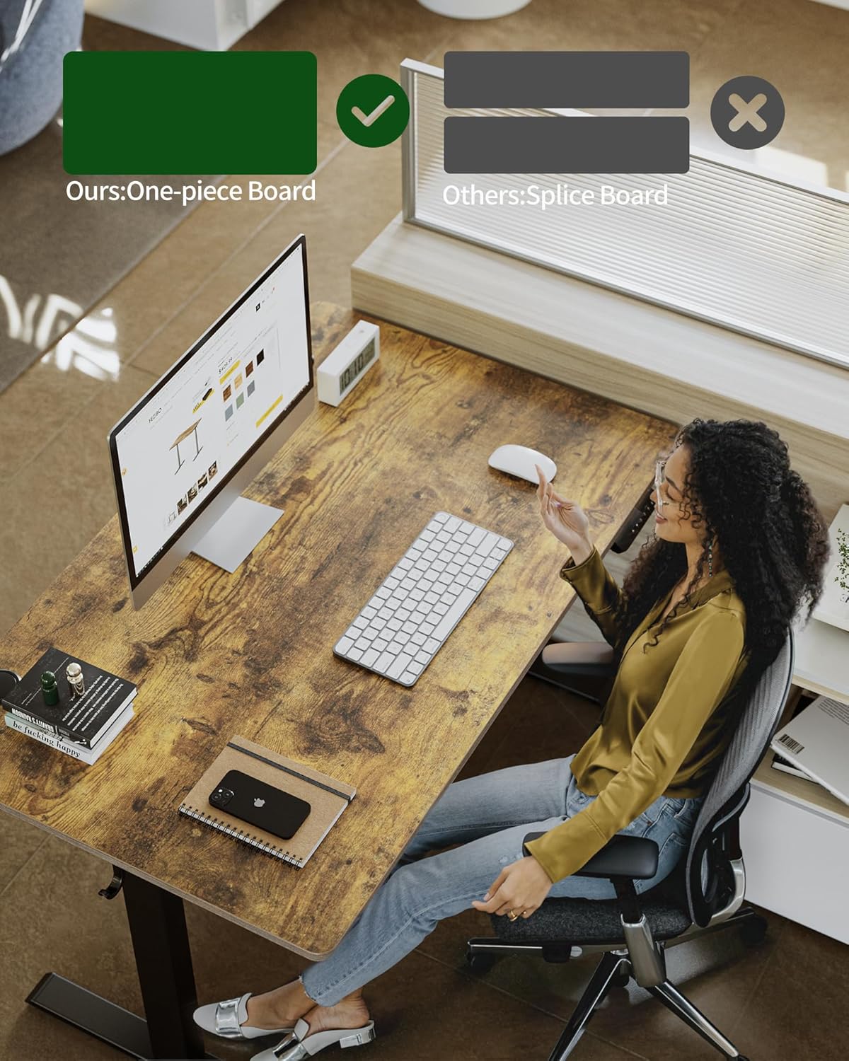 - Seamless One-Piece Design: Fezibo adjustable standing desk features a smooth, one-piece desk surface without visible seams. Unlike other models with joined panels, this seamless design offers 30% enhanced stability to provide a solid foundation for your equipment.