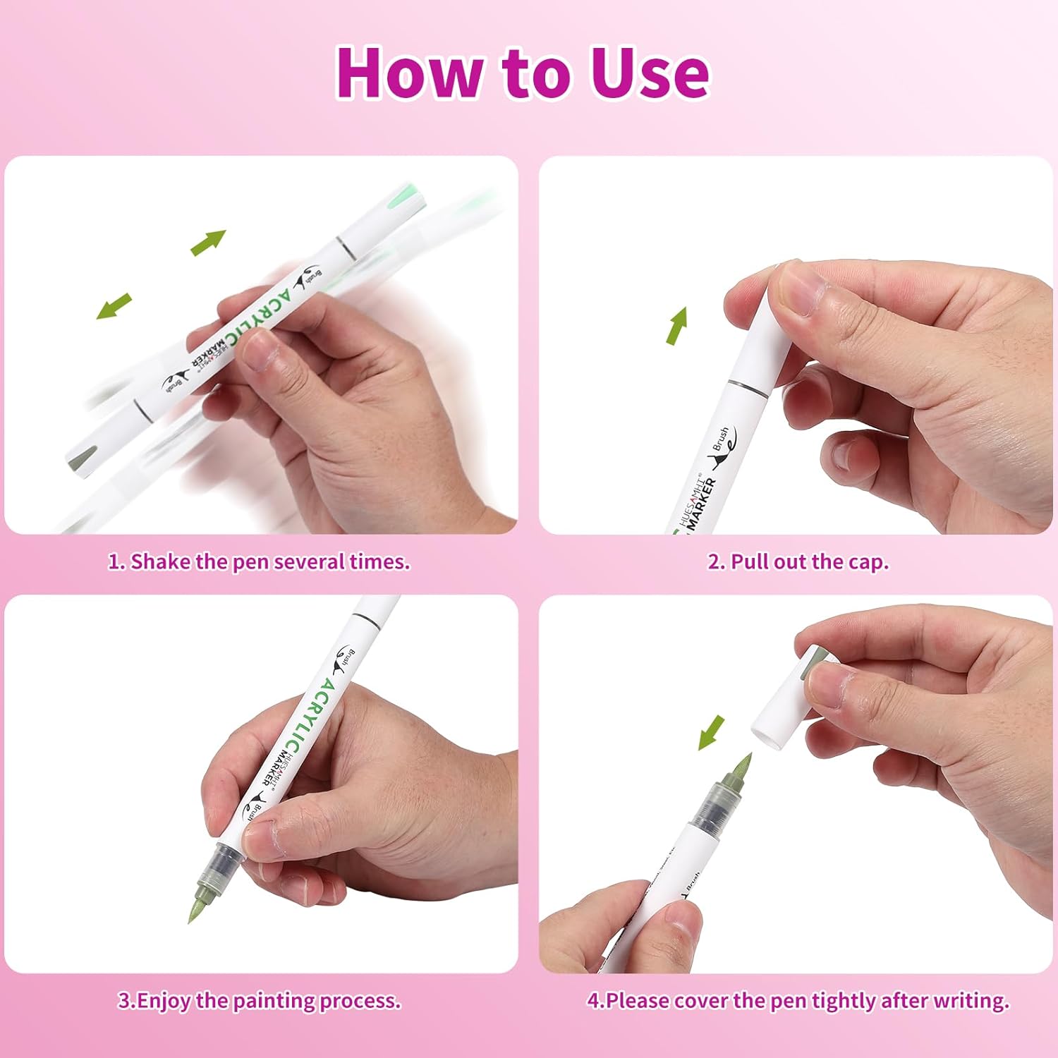 Dual Tip Brush Markers, 4 Pack Double Ended Acrylic Paint Pens - Permanent Water-Based for Rock Painting, Wood, Metal, Ceramic, Glass, Crafts & Kids Art Assorted Colors