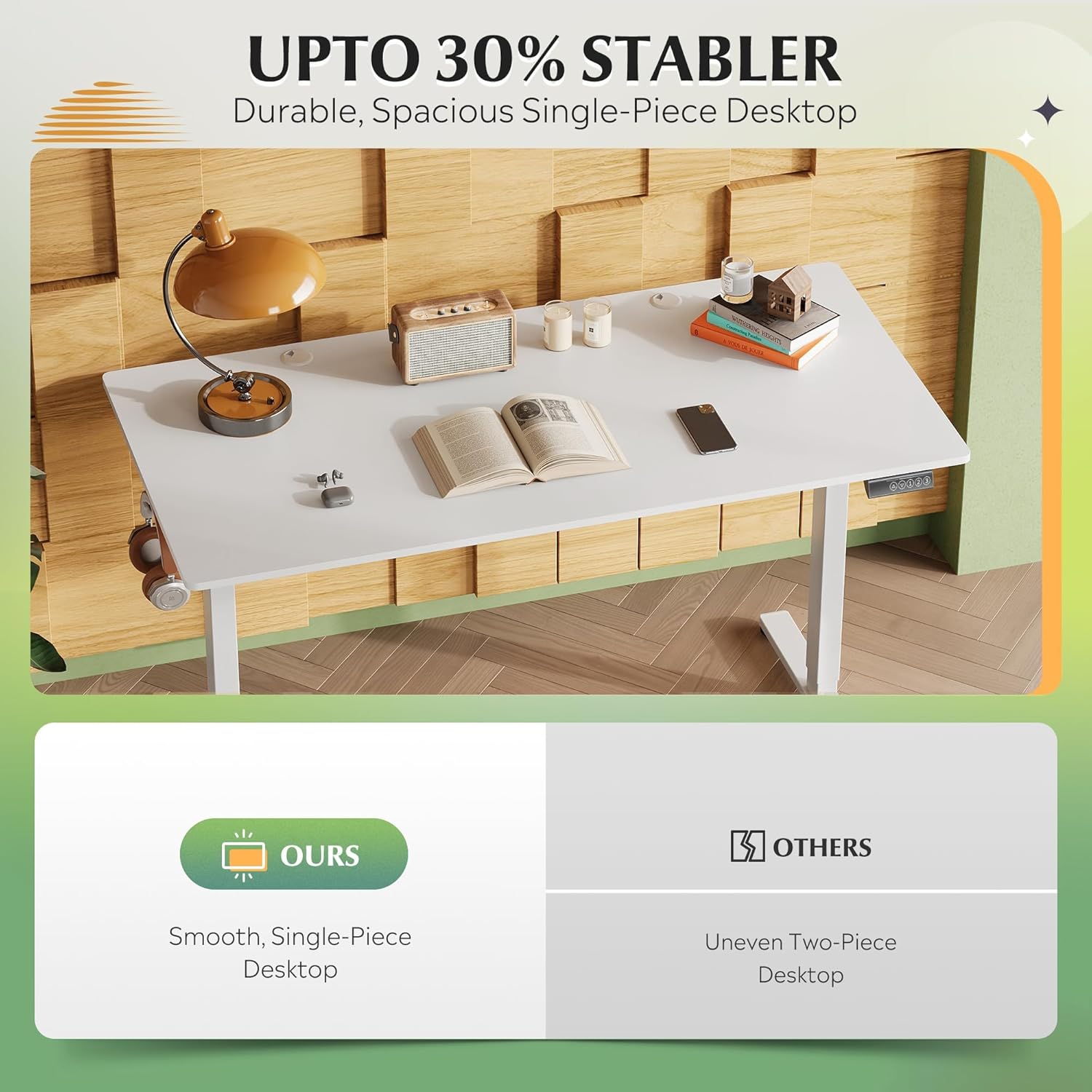 - Hassle-Free Assembly: The electric standing desk includes detailed instructions for streamlined installation. One-piece desktop requires less steps than joined desktops to save time and effort. Please contact our U.S.-based product support team if you have questions about assembly or product selection.