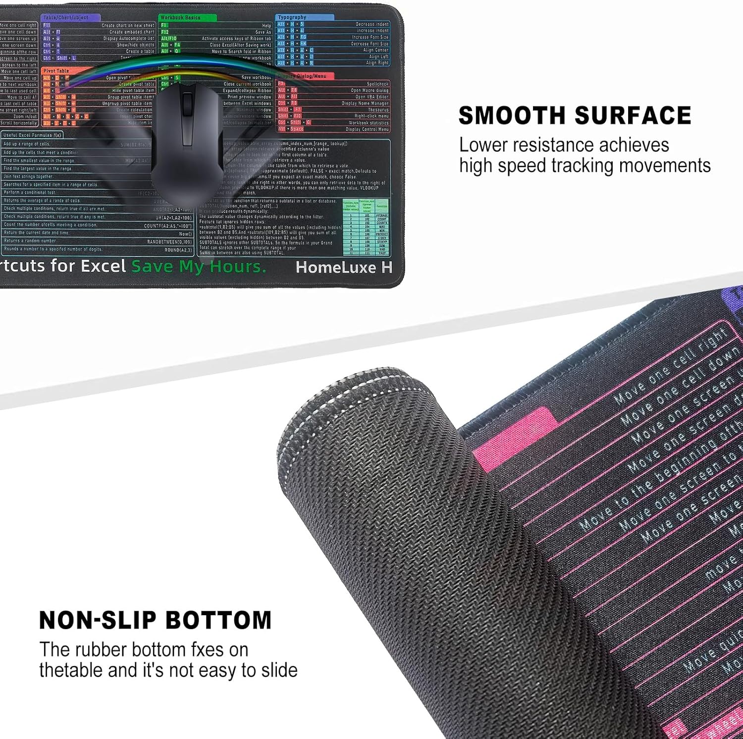 Excel Cheat Sheet Desk Pad-Large Mouse Pad for The Accountant,Office Accessories, Mat for Microsoft Office,Non-Slip Stitched Edge