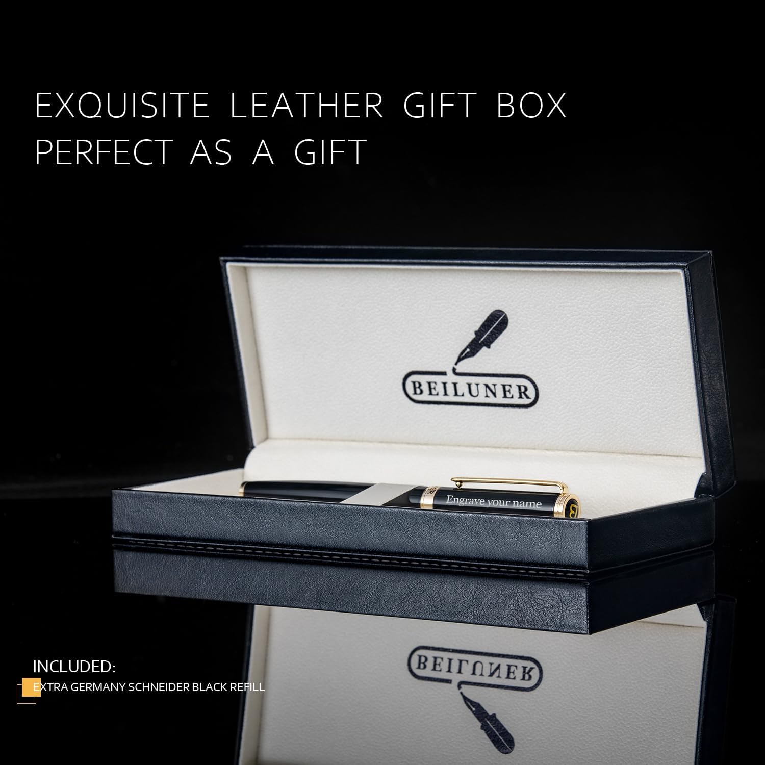 - Elegant Gift Box for Unboxing Luxury-Presented in an exquisite leather gift box, this pen is an ideal gift for any occasion. Whether it’s a birthday, graduation, or a special corporate gift, the Pen is sure to impress and leave a lasting impression. Comes with an extra Schneider refill!