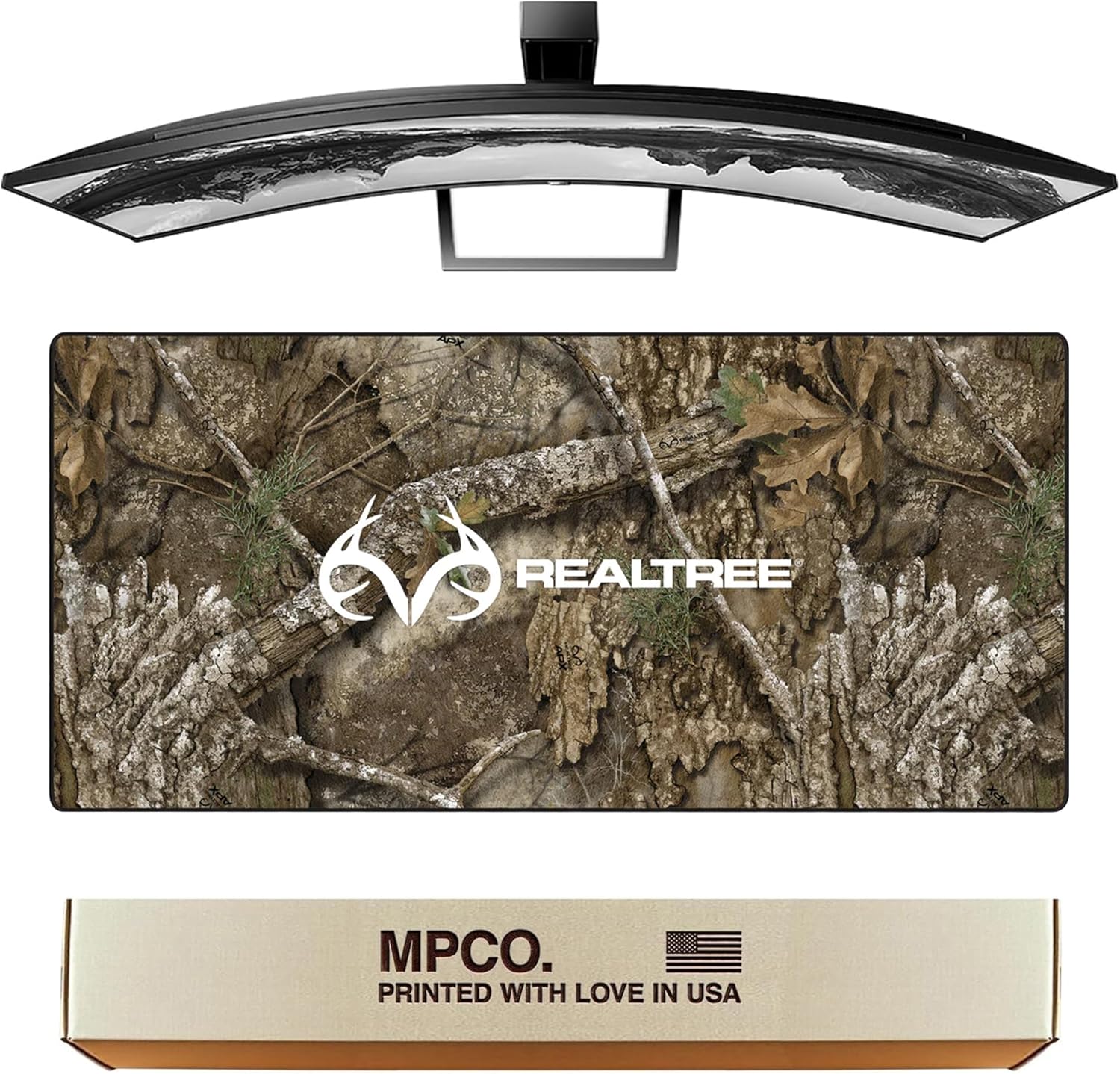 MPCO. Real Tree Large Gaming Desk Pad - 36" x 17" Aeroglyde Fabric APX – with Logo Desk Mats - Non-Slip, Washable, Smooth Glide for Precision Gaming & Work