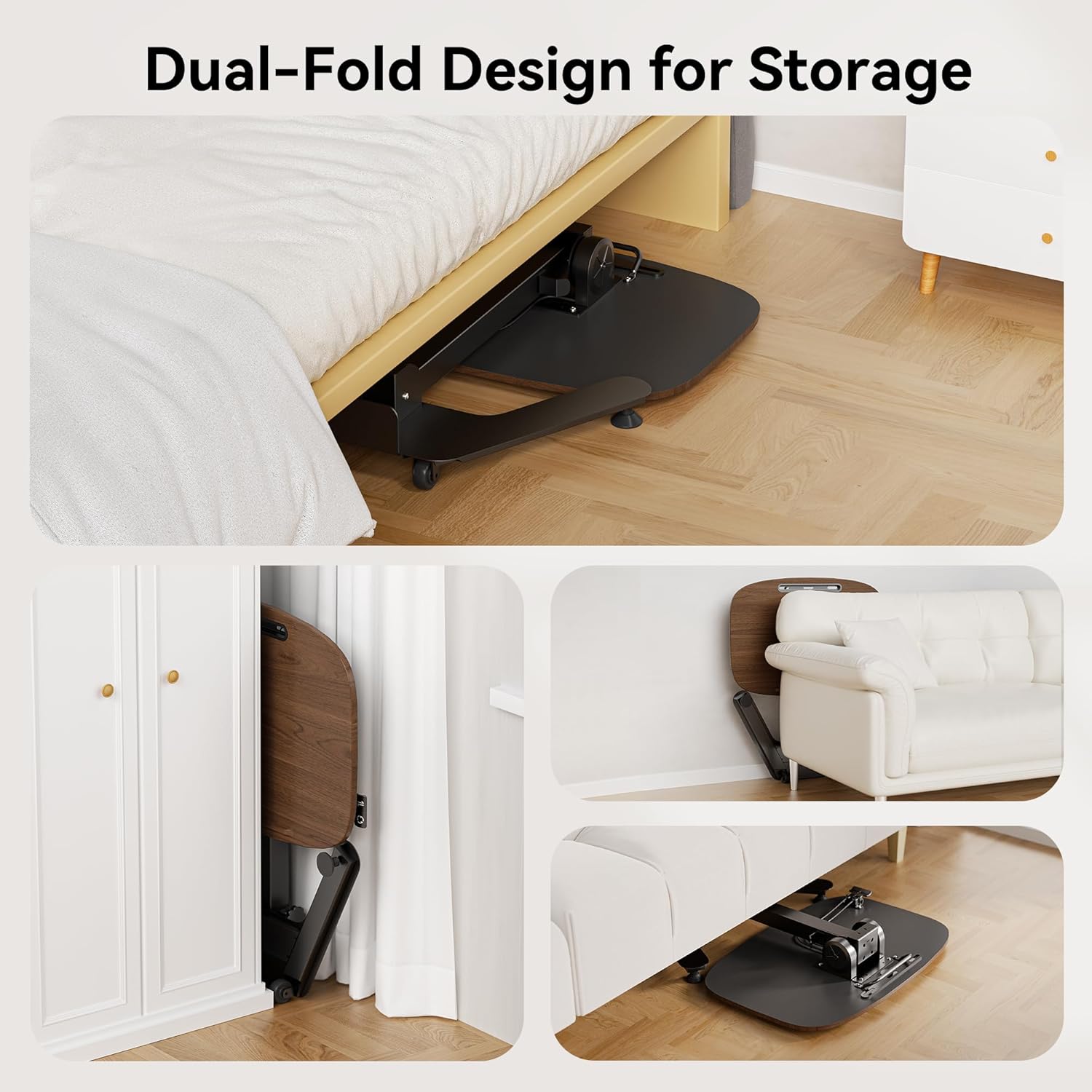 - 【Foldable & Space-Saving Design】This mobile desk can be easily folded flat in seconds and stored under beds, sofas, or in narrow corners. Perfect for small spaces, it maximizes your room layout without sacrificing functionality or style.