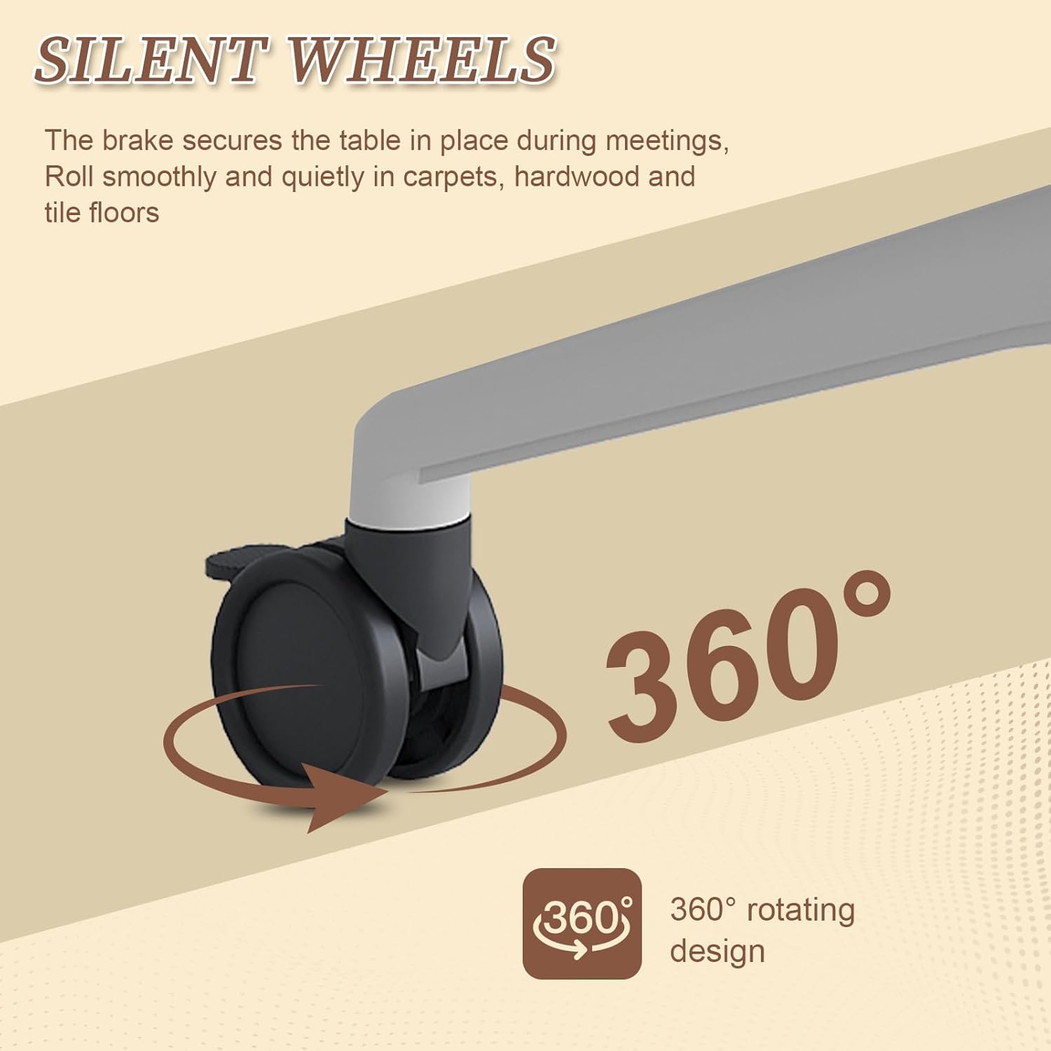 - ăNoiseless WheelsăOur flip top meeting table is equipped with 360° rotated casters which is made of Polyurethane material. The wheel of modern folding training tables is noiseless and can move smoothly. Also, our wheels of rolling meeting table has brake which can make your table stay in place during meeting.