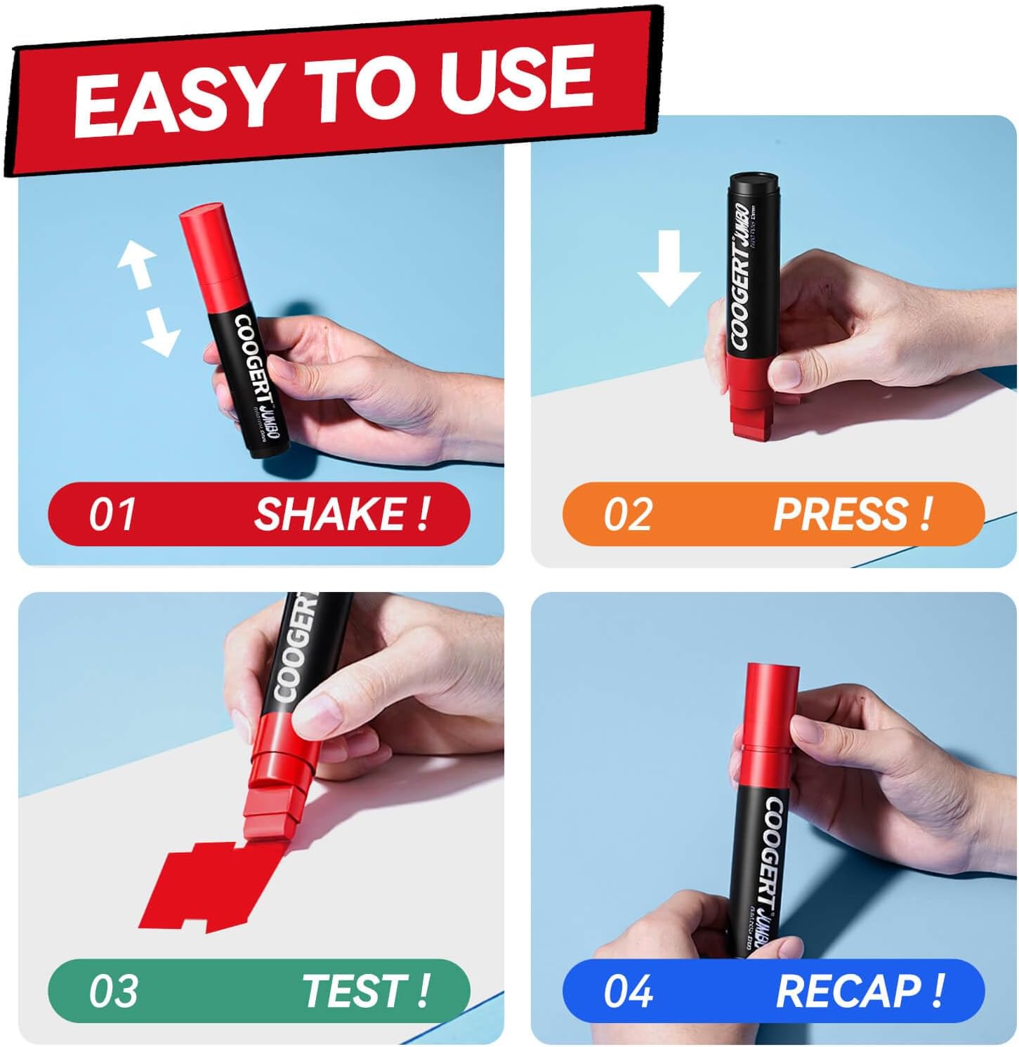 - ACRYLIC GRAFFITI MARKERS – Coogert Jumbo Poster Markers is made with the highest-quality non-toxic, acid-free,no odor, no-leakage water-based acrylic ink that is waterproof, quick dry, long-lasting, and has a smooth ink flow