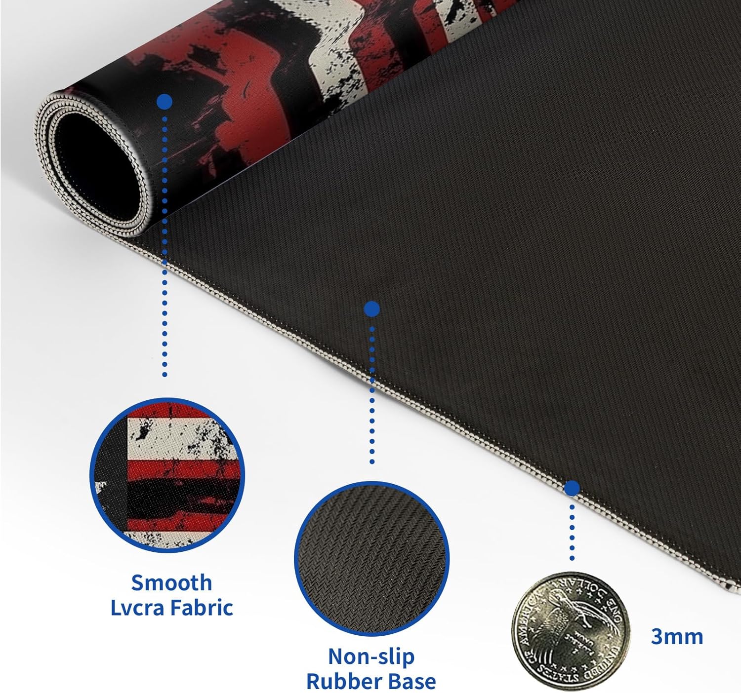 - ā„[Highly Durable Design]:Our American Flag mouse pad long with delicate and durable stitched edges, which can effectively prevent fray and degum.It also enhances the aesthetic and lifespan of the mouse pad.You can use it easily.