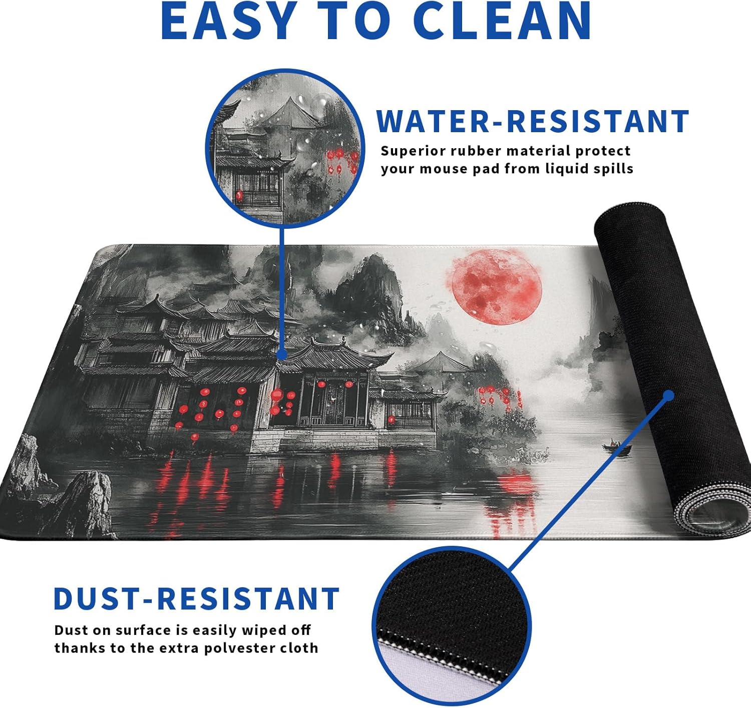 - ā„[Easy To Clean]:This large Retro Landscape mouse pad for desk, Spill-proof coating protects your desktop from spilled water, Drinks, Ink and the other liquid spilled liquid or other accidents. Easy to clean, Just wipe with a wet cloth or paper, Does not fade and can be washed and foldable without leaving creases, Easy to carry.
