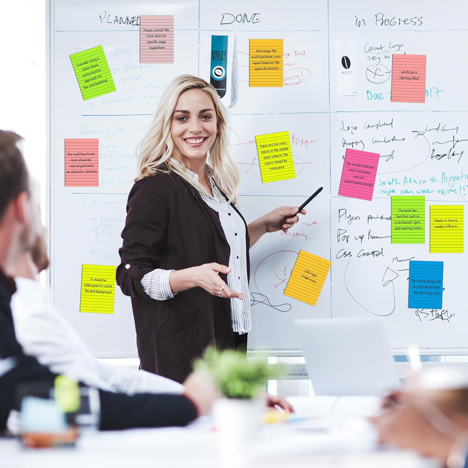 - 【Grogeous Color】7 Bright colors make the sticky notes catch your attention easily.(Red, Yellow, Orange, Green, Blue, Purple and Pink)