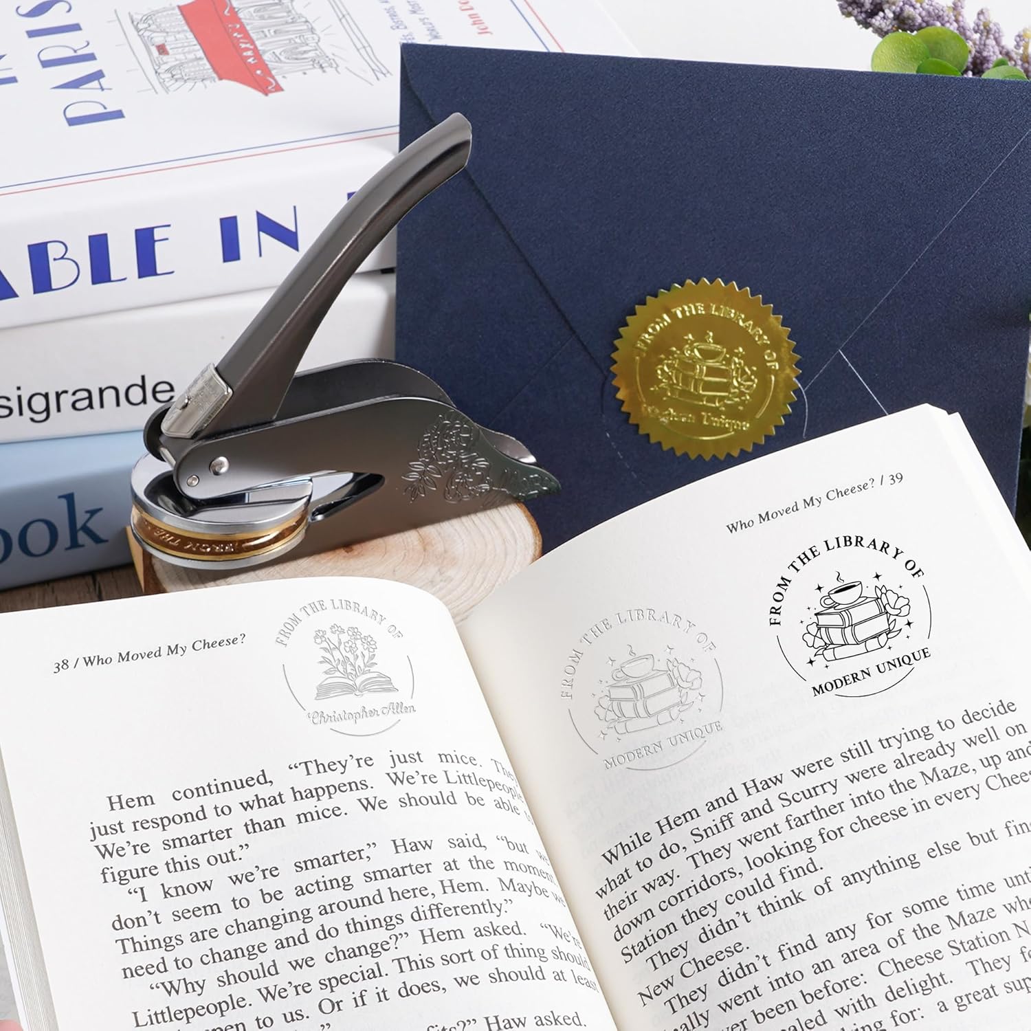 Easycosy Personalized Book Embosser | Custom Embosser & Stamps from The Library of | Book Stamp Personalized with Your Name & Choice Birthday Gifts for Book Lover(Book 2)