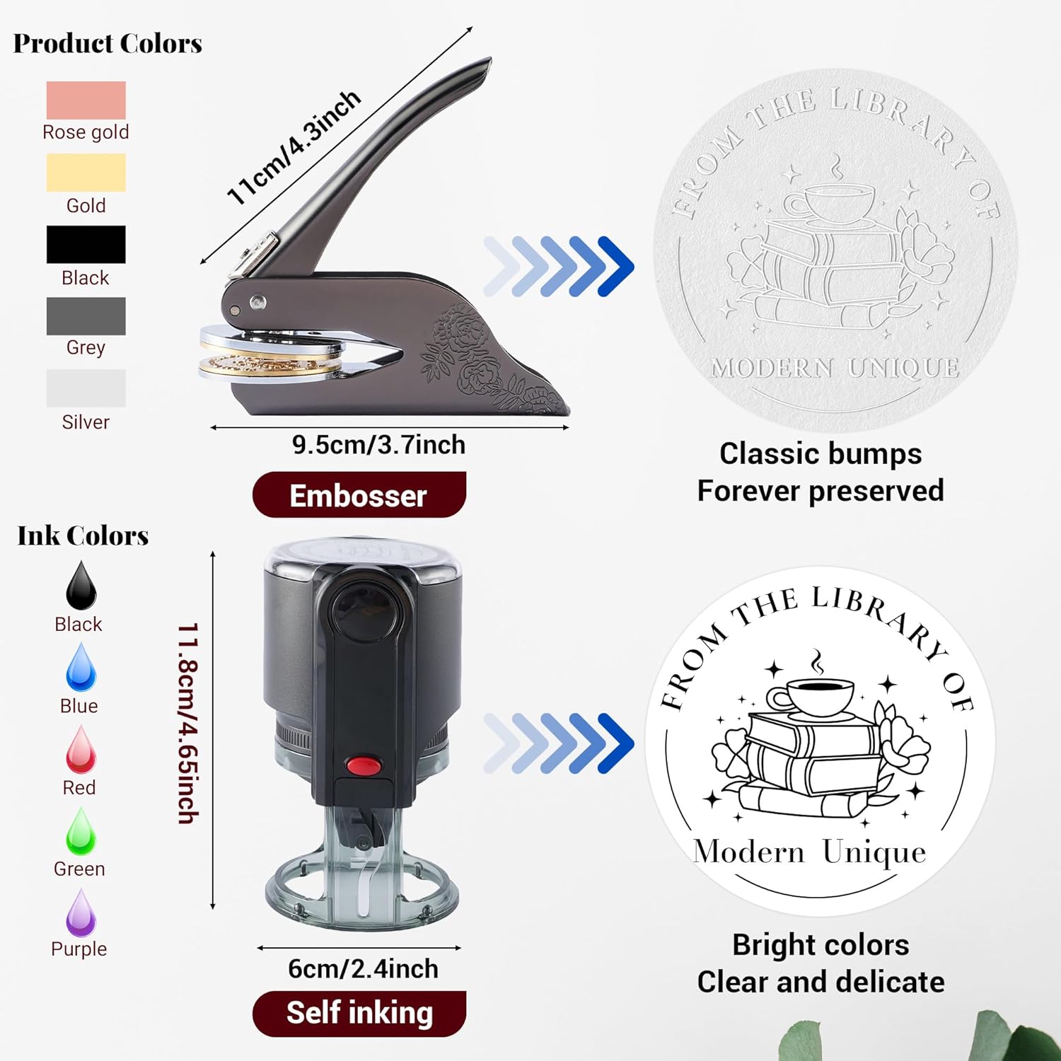 - 🔒Elegant Design: Available in a range of stylish colors including rose gold, silver, black, and gold, our personalized book embosser combines form and function. With its compact size (approximately 10 cm in length), it resembles a miniature stapler, making it not only portable but also a chic addition to your workspace or home decor. It's perfect for showing off your taste wherever you go.