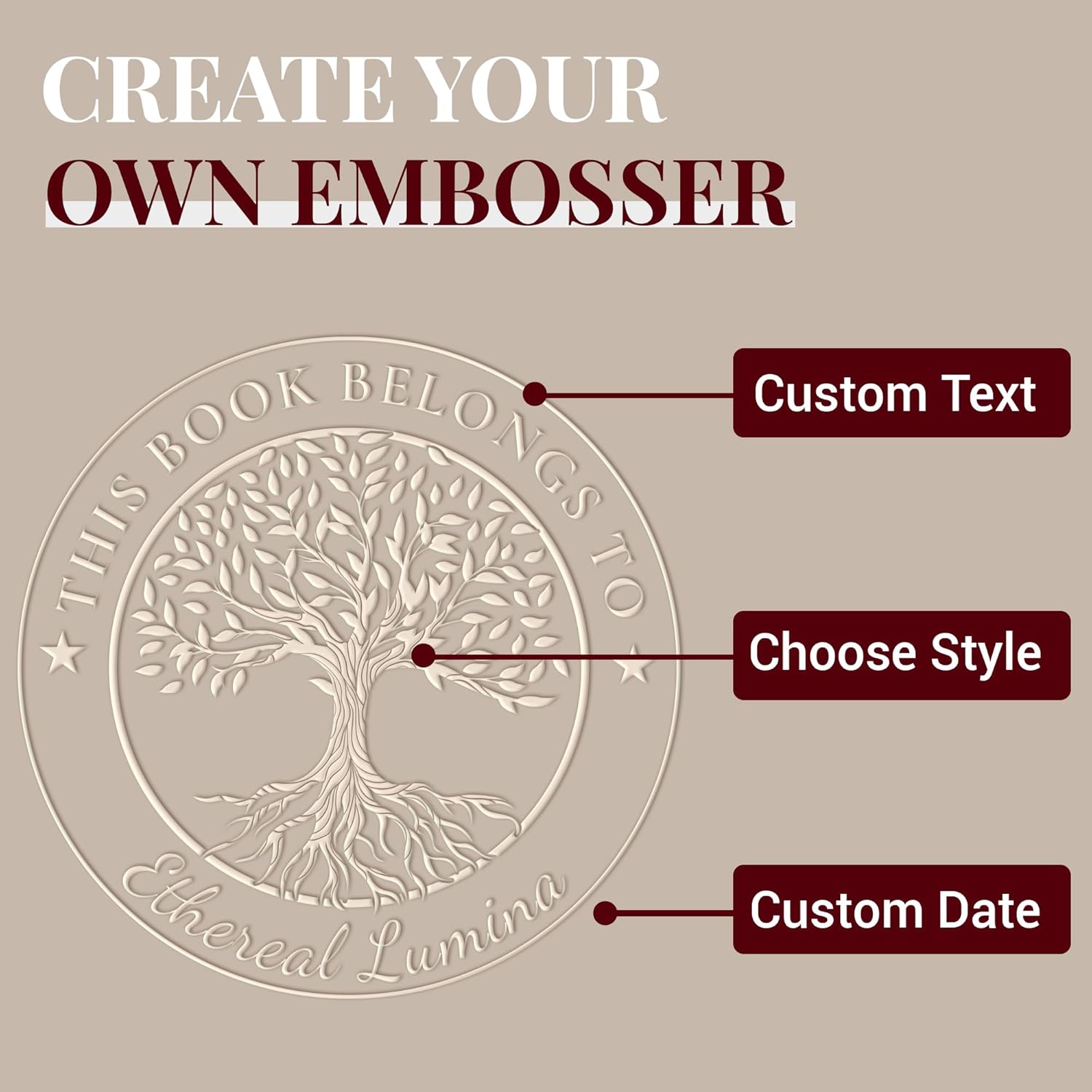 Easycosy Personalized Book Embosser | Custom Embosser & Stamps from The Library of | Book Stamp Personalized with Your Name & Choice Birthday Gifts for Book Lover(Tree 4)
