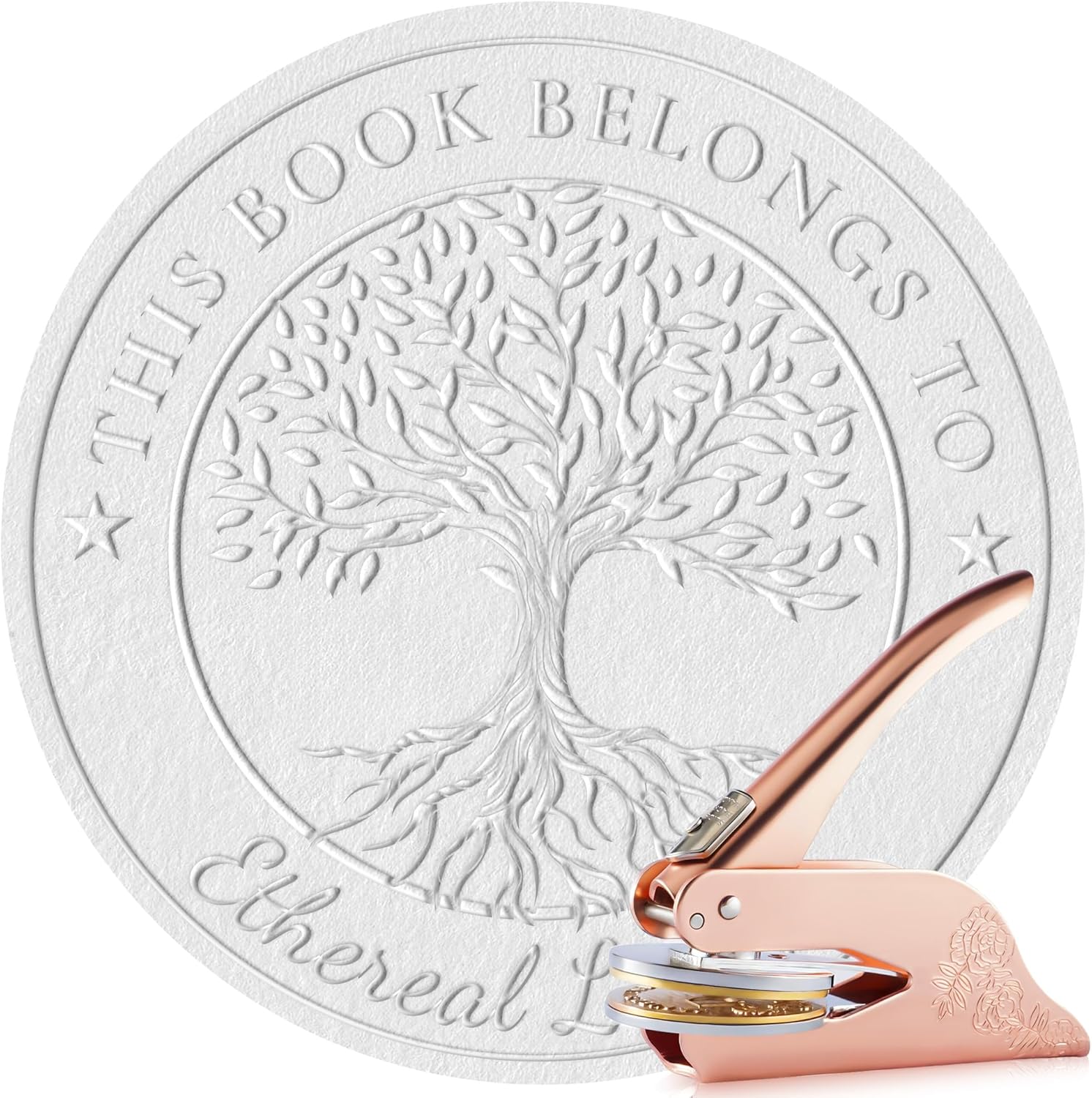 - 🔒Elegant Design: Available in a range of stylish colors including rose gold, silver, black, and gold, our personalized book embosser combines form and function. With its compact size (approximately 10 cm in length), it resembles a miniature stapler, making it not only portable but also a chic addition to your workspace or home decor. It's perfect for showing off your taste wherever you go.