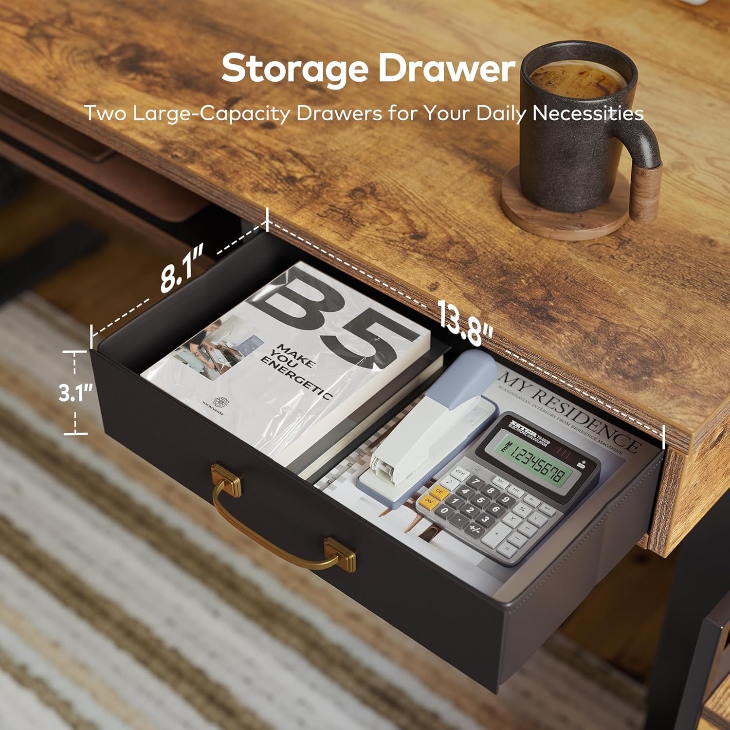- Spacious Work Space: The top shelves with double drawer design expertly make your desktop tidier and helps you head up when you put your screen on it.
